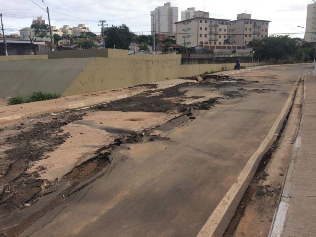 O trecho da pista leste da Marginal do Piçarrão na Vila Industrial, em Campinas, começou a receber reparos após a enxurrada do último dia 25 que abriu buracos e causou ondulações no asfalto e na calçada. A pista havia sido inaugurada três dias antes e não suportou a enchente durante a chuva que chegou a 110 milímetros em menos de duas horas. A água atingiu as casas do entorno e deixou muitos prejuízos.