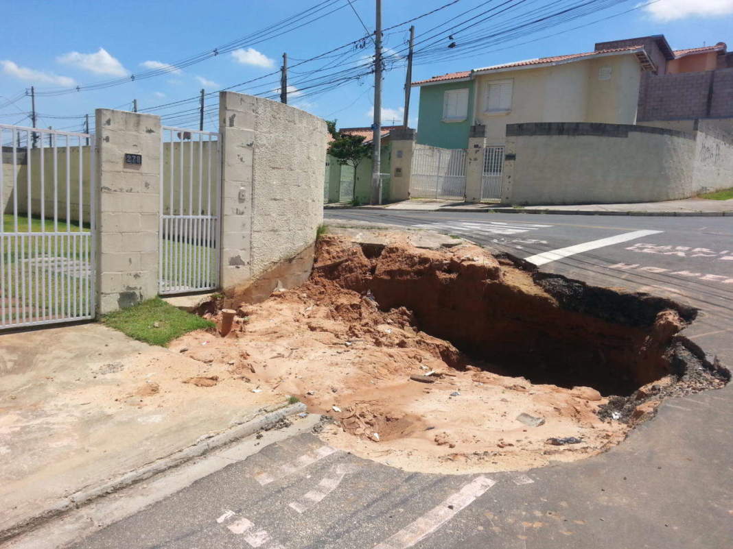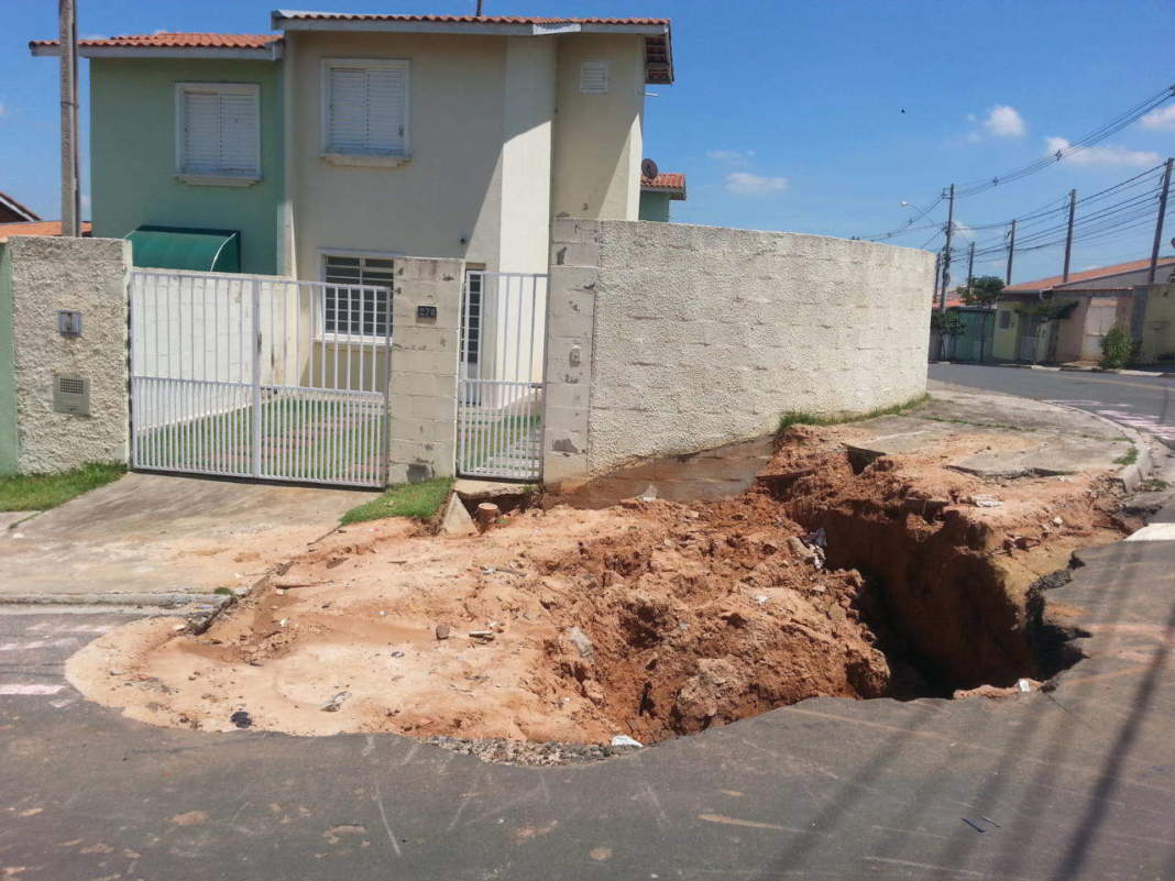 Um bairro novo, com excelente infraestrutura, asfalto impecável na maioria das ruas e avenidas e casas e prédios bem cuidados. Essa é a realidade do Residencial Cosmos, em Campinas. Mas desde novembro do ano passado, os moradores da Rua José de Lima Piauhi Dourado estão convivendo com um enorme buraco que abriu na rua e em parte da calçada em frente ao número 278. O buraco tem cerca de três metros de diâmetro e mais de dois metros de profundidade.