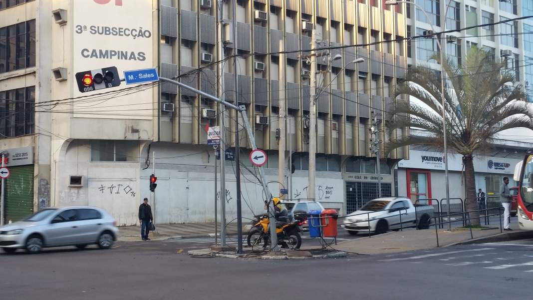 Um acidente causou lentidão no cruzamento das avenidas Moraes Salles e Francisco Glicério, no centro de Campinas, na manhã desta quinta-feira. Um caminhão bateu contra um semáforo e ainda atingiu um ônibus, o que travou o corredor exclusivo e afetou a pista esquerda da Moraes Salles. A colisão aconteceu por volta de 6h30 e os veículos foram removidos cerca de meia-hora depois.