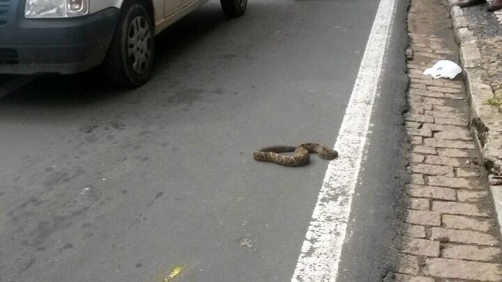 Uma cascavel mobilizou o corpo de bombeiros no início da tarde desta segunda-feira, no centro de Campinas. A cobra chegou a ocupar uma das faixas da Av. Benjamin Constant. Mônica Alves que trabalha em uma loja na via chegou a filmar a cascavel entre os carros. Ela ficou assustada com a situação.