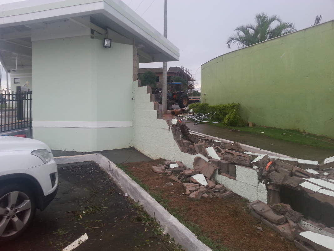 O fenômeno climático conhecido como microexplosão, que foi registrado na madrugada deste domingo em Campinas, danificou cerca de 500 casas no residencial San Conrado, que fica no final da Avenida Mackenzie. Parte de uma residência não resistiu a força do vento e caiu. O muro do condomínio fechado também não suportou e cedeu em cima de vários automóveis. Ninguém se feriu.