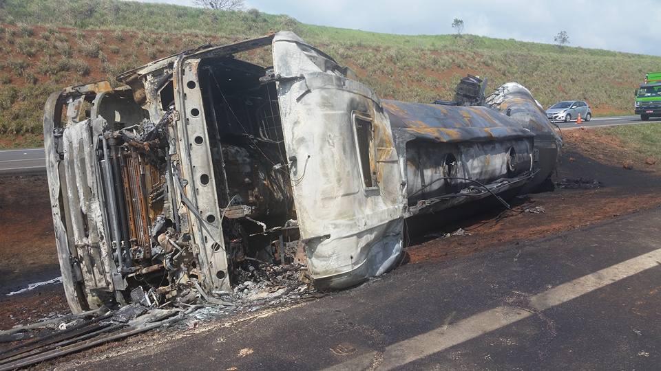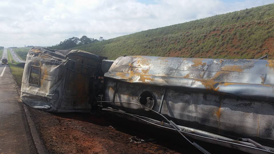 A Rodovia dos Bandeirantes continua parcialmente interditada no km 122, região de Sumaré, por causa de um caminhão carregado de óleo diesel, que explodiu quando o motorista tentou desviar de um motociclista e perdeu o controle do veículo.