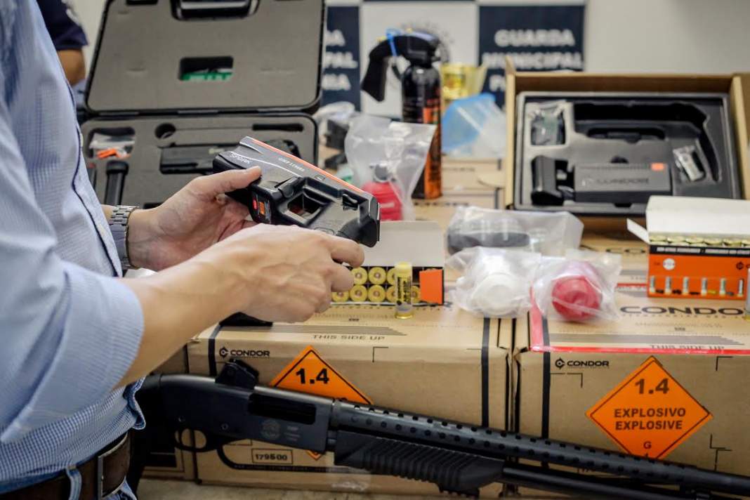 A Guarda Municipal de Paulínia recebeu nesta terça-feira, novos armamentos letais e não letais. No total foram adquiridos 40 pistolas calibre ponto 380, duas espingardas calibre 12 e quatro pistolas de choque. Além das armas foram adquiridos também, munições não letais, granadas de pimenta e de gás lacrimogênio e sprays de pimenta. Segundo o Secretário Municipal da Segurança Pública, Fábio Feldman, os armamentos não letais só serão usados para controle de distúrbios populares ou para a garantia da lei e da ordem pública municipal. As pistolas de choque não letais têm um chip que permite identificar a hora do disparo e a intensidade da carga aplicada. Todas essas informações são úteis para uso da Polícia Civil nas investigações de crimes. Para usar os equipamentos os GM´s terão que passar por treinamento especializado. De acordo com o Secretario Municipal, foram investidos cerca de R$ 300 mil nos novos armamentos.