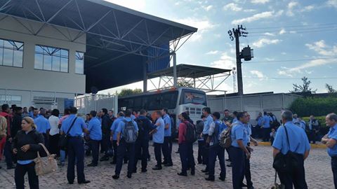 Do local, saiu um veículo de uma linha intermunicipal por volta das 8 horas e o motorista foi vaiado pelos colegas. Mesmo assim, a maior parte da frota de cerca de 200 ônibus segue estacionada no pátio.
