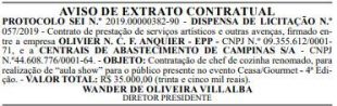 Segundo a publicação, houve a “Contratação de chef de cozinha renomado, para realização de ‘aula show’ para o público presente no evento Ceasa/Gourmet – 4ª Edição. – VALOR TOTAL: R$ 35.000,00”