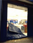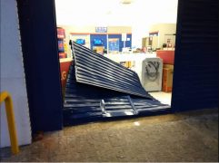 Para entrarem no local, os assaltantes arrombaram a porta metálica da loja. De acordo com os policias que estavam no local, provavelmente os bandidos usaram um veículo para arrebentarem a entrada.