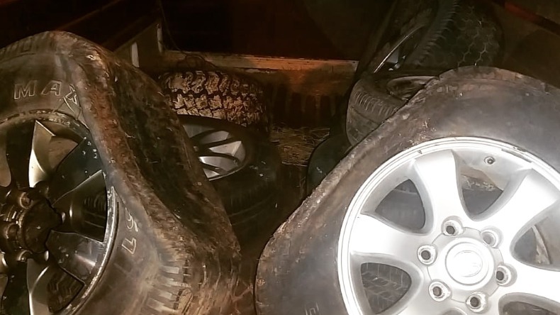 Uma pessoa denunciou para a Polícia Militar que um grupo em dois veículos rondava o pátio de forma suspeita. Quando a PM chegou ao local, encontrou os criminosos do lado de fora, com rodas e pneus que haviam sido retirados do pátio. Os quatro foram levados à Delegacia da Polícia Federal e ficaram à disposição da Justiça.