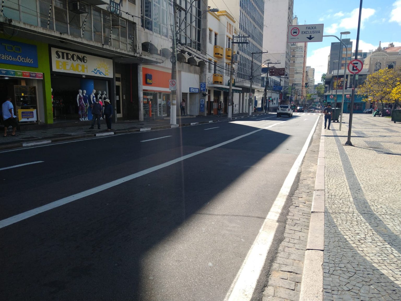 A Rua General Osório, no Centro de Campinas, agora tem uma faixa exclusiva para ônibus. A faixa entrou em operação nesta segunda-feira (30), e fica em um trecho de 300 metros à direita da via, entre as avenidas Francisco Glicério e Anchieta. A faixa foi implantada pela Emdec e Secretaria de Transportes (Setransp) para melhorar o fluxo das 13 linhas de ônibus que passam pela rua diariamente, transportando 34 mil passageiros. Na manhã desta segunda a maioria absoluta dos motoristas de carros e motos já respeitava a nova faixa, concentrando o fluxo nas outras duas faixas existentes.