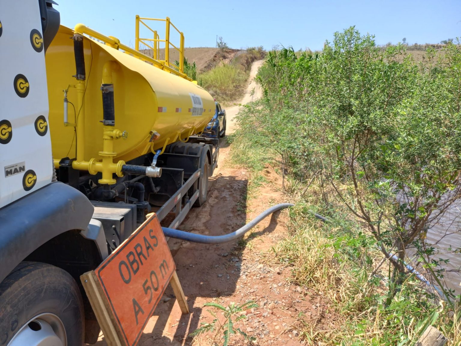 Durante a averiguação, foi constatado que o caminhão-pipa estava no local para retirada de água de um lago na área de preservação ambiental.