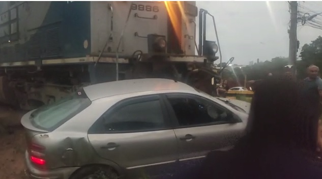 Um carro foi atingido por um trem no cruzamento da linha férrea que passa pela região da Vila Real, em Hortolândia.