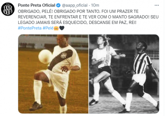 No twitter, a Associação Atlética Ponte Preta, prestou uma homenagem ao Rei do Futebol: