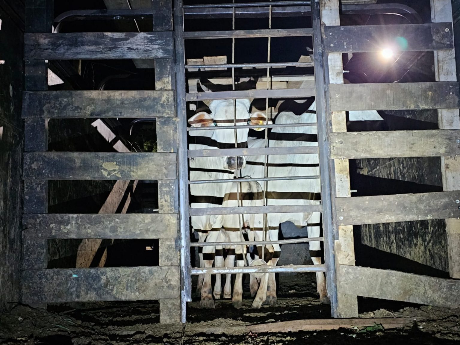 Na noite desta quinta-feira, enquanto faziam o monitoramento do caminhão, perceberam que os criminosos embarcaram duas vacas e um bezerro no veículo.