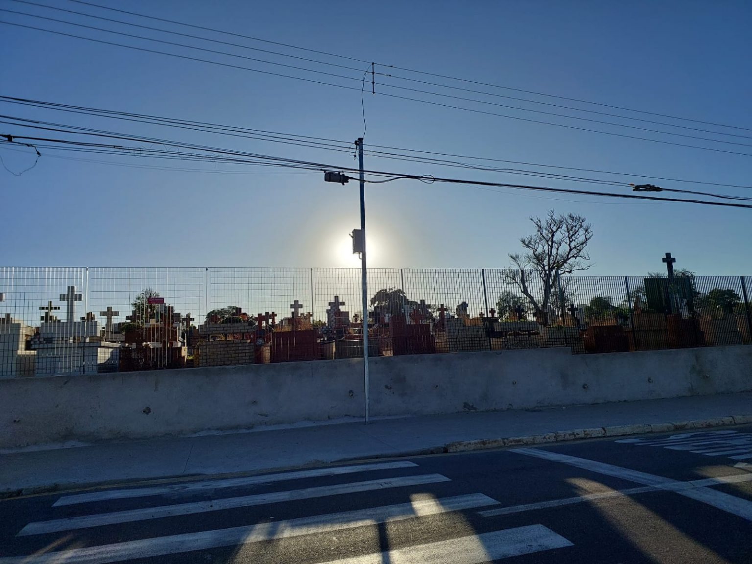 O dublador Rogério Ferreira caminha na avenida Engenheiro Antônio Francisco de Paula Souza bem na frente do cemitério. Ele acredita que a maneira como o local está hoje tira a privacidade das pessoas que estão velando os entes queridos.