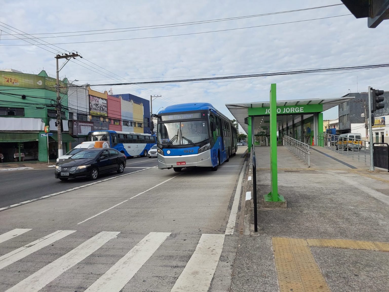Sobre as linhas que cruzam a avenida fazendo um “X”, da direita para a esquerda, elas têm origem do eixo da rodovia Santos Dumont (SP-75). São veículos com porta à direita, que realizam desembarque / embarque pelo lado direito do veículo. Tal situação será resolvida com os novos contratos de concessão.