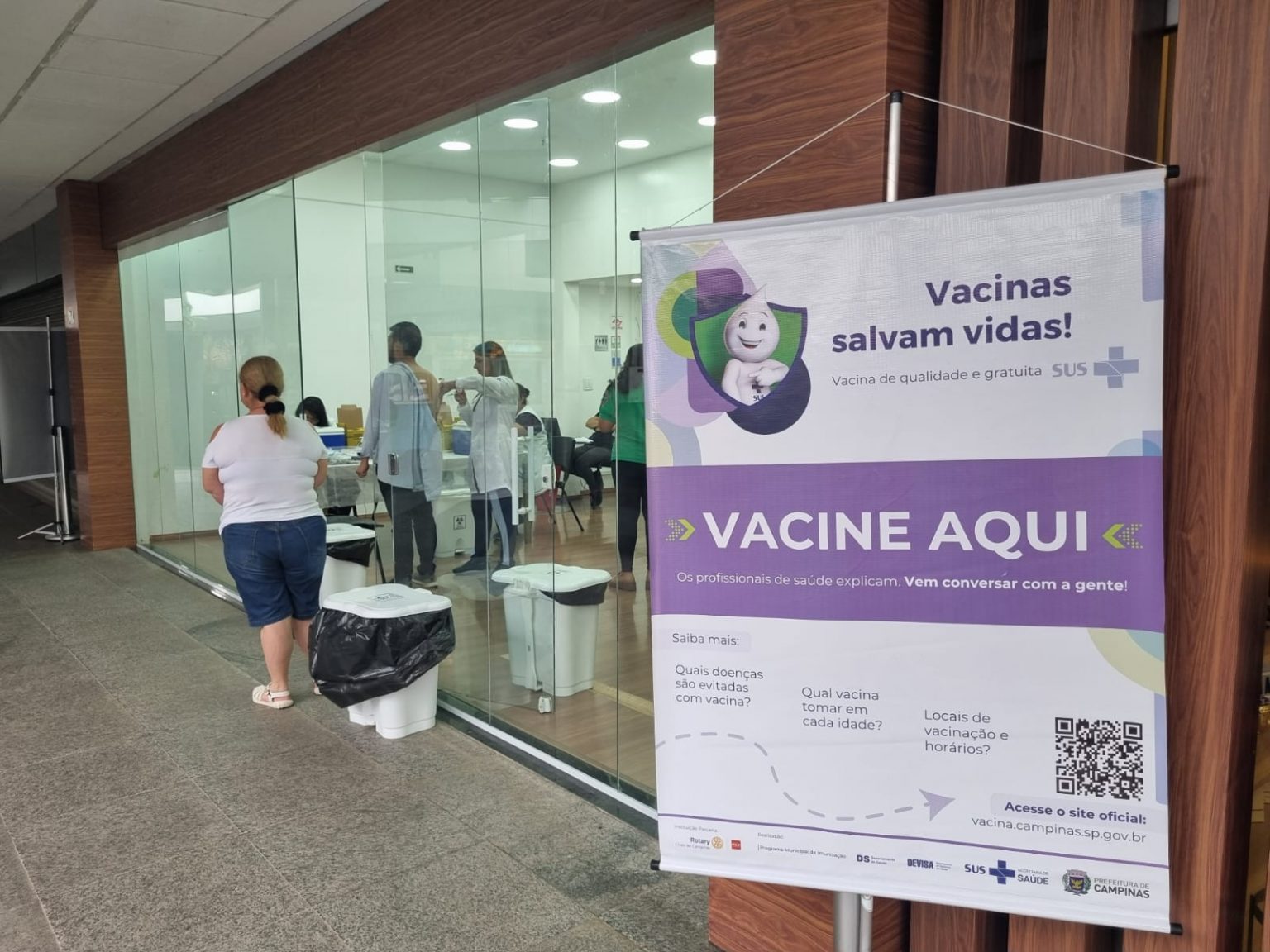 A ação especial da campanha de multivacinação acontece até sábado (28) no Shopping Unimart, no Jardim Aurélia. A prioridade é vacinar crianças e adolescentes de até 14 anos, mas os adultos também podem atualizar a caderneta de imunização, segundo a enfermeira Caroline Silva de Souza.