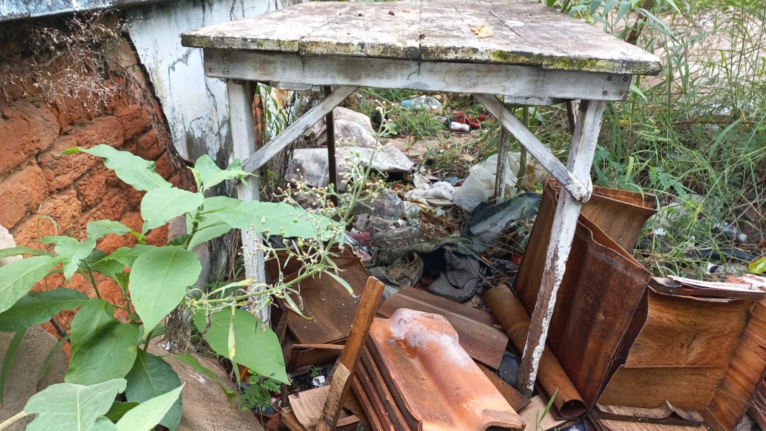 O local tinha grande volume de entulho, lixo e inservíveis. Por esse motivo, o material foi retirado com auxílio de uma retroescavadeira e levado de caminhão ao Aterro Sanitário.