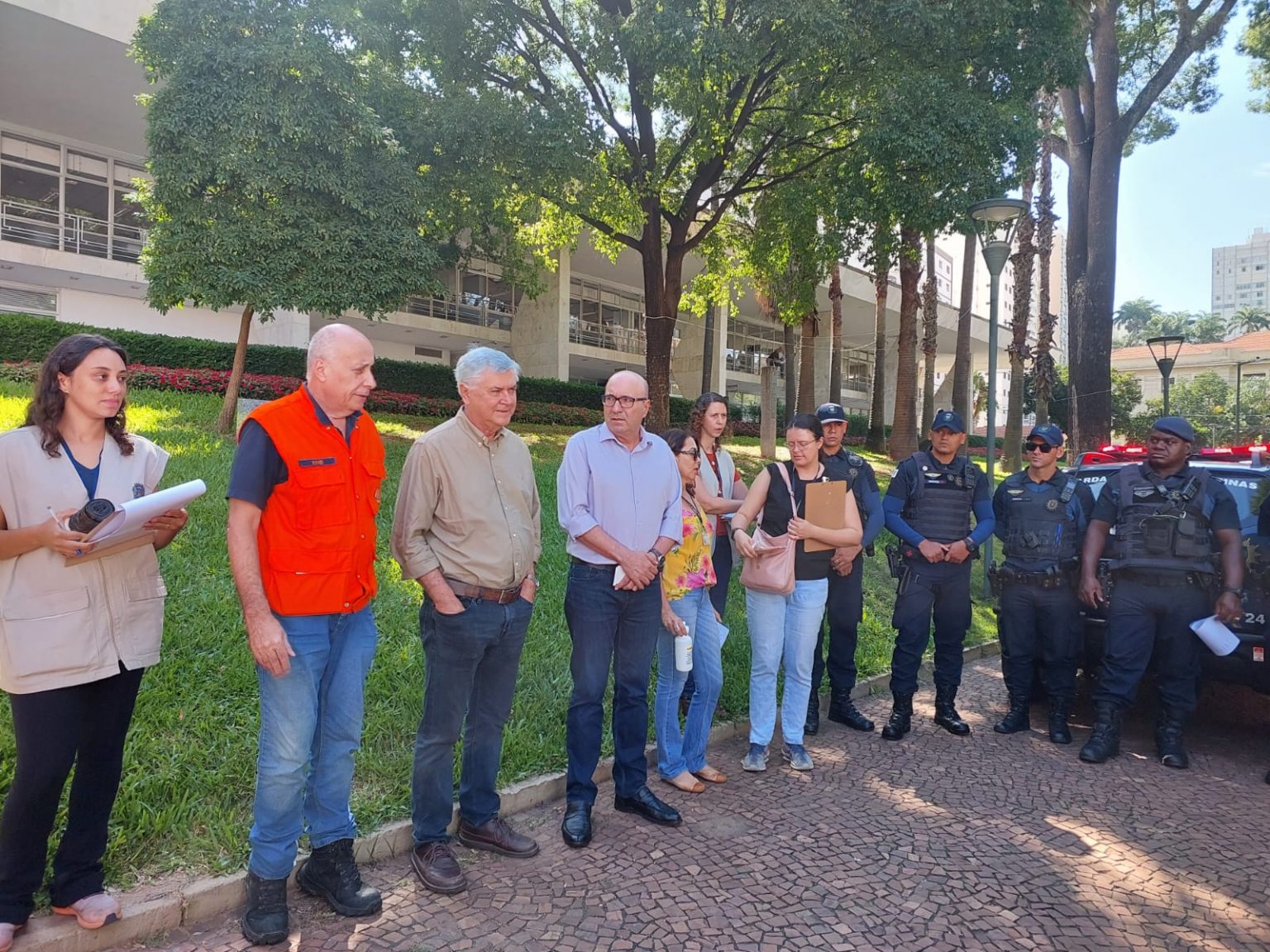Representantes da Secretaria de Saúde de Campinas, Defesa Civil, Guarda Municipal, Procon e entre outros setores municipais participam de uma ação para o combate de criadores da dengue em Campinas nesta quinta-feira (28). Os departamentos atuam com o Grupo de Resposta Unificada (GRU).