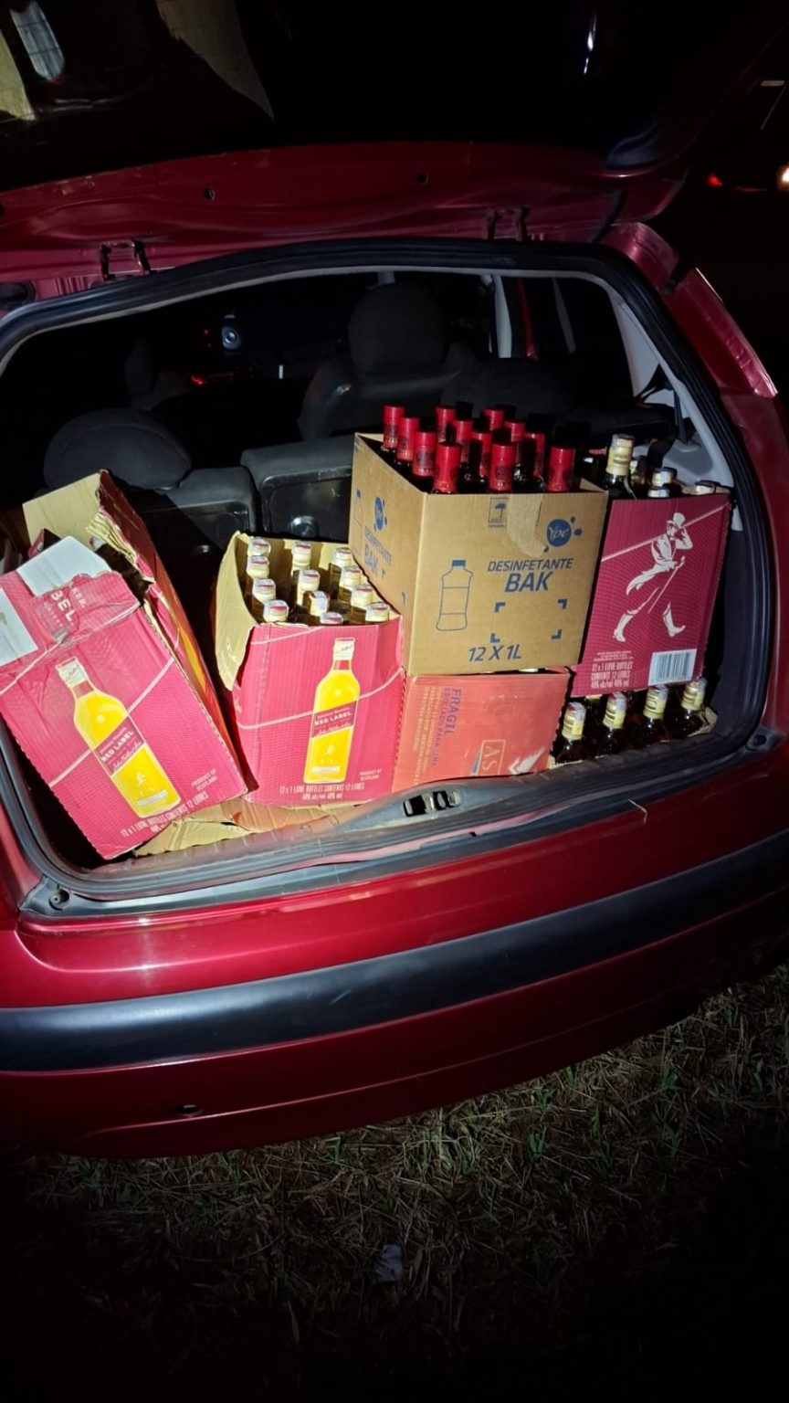 No entanto, no porta-malas, os policiais encontraram cerca de 116 garrafas de whisky e 34 garrafas de vodka, todas sem notas fiscais e com fortes indícios de falsificação.