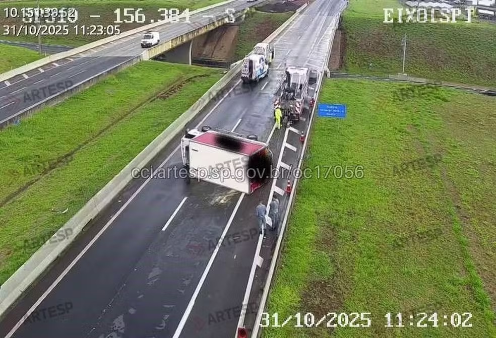 Segundo a Agência Reguladora de Transporte do Estado de São Paulo (Artesp), o tombamento ocorreu sobre duas faixas. A Polícia Militar Rodoviária encaminhou uma viatura ao local.