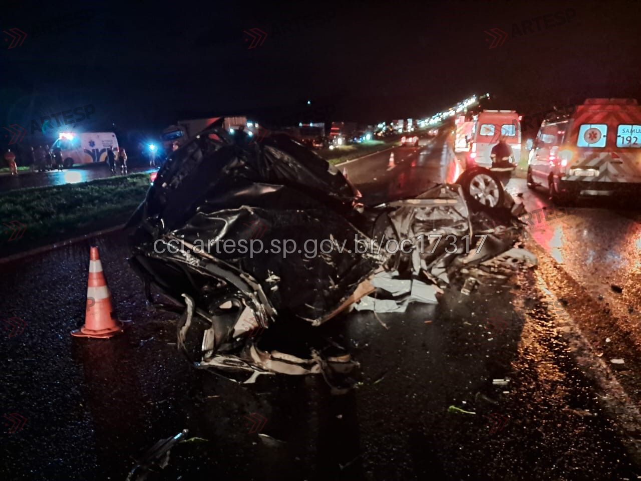 Com o impacto, os dois veículos foram arremessados de volta para a pista oposta. Quando a Polícia Militar Rodoviária chegou ao local, o motorista do carro já estava sem vida — o óbito foi confirmado pelo SAMU.