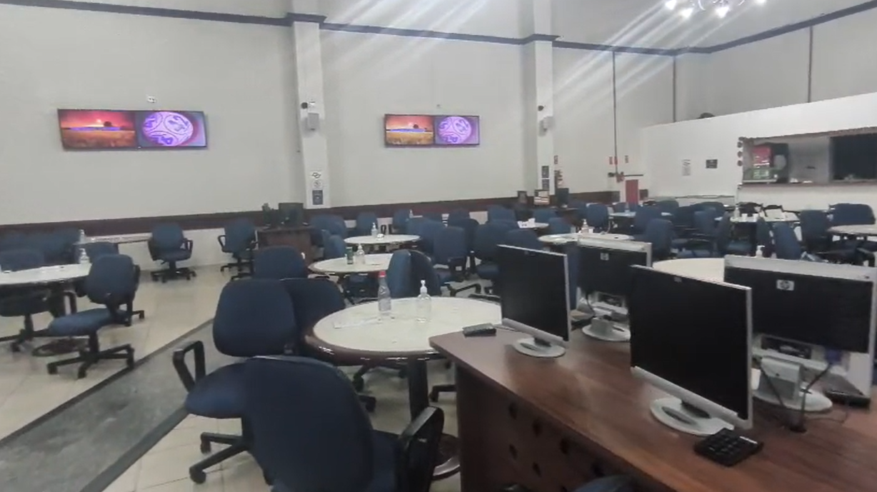 No momento da abordagem, 73 pessoas estavam jogando. O local tinha estrutura completa, com mesas, cadeiras, computadores e até sistema de segurança com câmeras.
