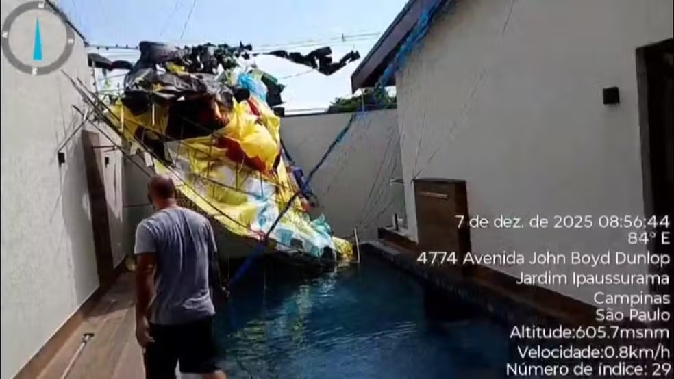Na residência atingida, o balão danificou a cerca elétrica e parte da estrutura da piscina. Moradores e vigilantes do condomínio ajudaram na retirada do material. Não houve registro de incêndio.