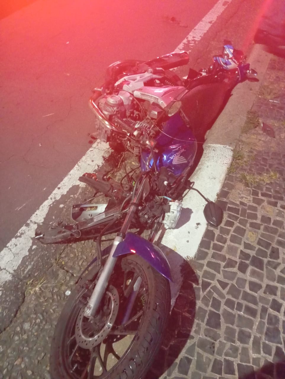 Segundo o boletim de ocorrência, a colisão aconteceu por volta de 1h12 e envolveu um Honda Civic, conduzido por um homem, de 29 anos, e uma motocicleta Honda CG 160, pilotada por um rapaz, de 21 anos.