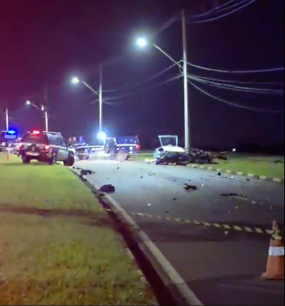 Um carro bateu em dois postes na avenida José Jayme de Moraes Salles Gonçalves Cortes, em Paulínia, na noite de domingo (11).