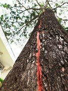 Um raio atingiu um jequitibá-rosa, de cerca de 50 metros de altura e 2,5 metros...